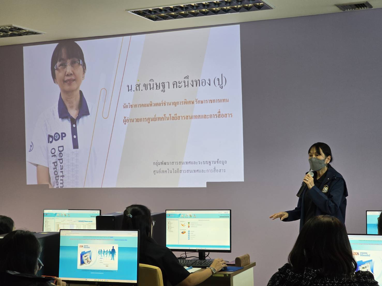 ในการจัดอบรมครั้งนี้ศูนย์เทคโนโลยีสารสนเทศและการสื่อสารได้เชิญเจ้าหน้าที่ในส่วนที่เกี่ยวข้องและใช้งานระบบสารบรรณอิเล็กทรอนิกส์ โดยมีเจ้าหน้าที่จาก สำนักงานคุมประพฤติกรุงเทพมหานคร 7 เข้าร่วมอบรมเพื่อให้มีความรู้ความเข้าใจในระบบสารบรรณอิเล็กทรอนิกส์ เพื่อให้เกิดความรู้และความเข้าใจในการใช้งานระบบในการทำงาน ณ ห้องอบรมคอมพิวเตอร์ ศูนย์เทคโนโลยีสารสนเทศและการสื่อสาร กรมคุมประพฤติ